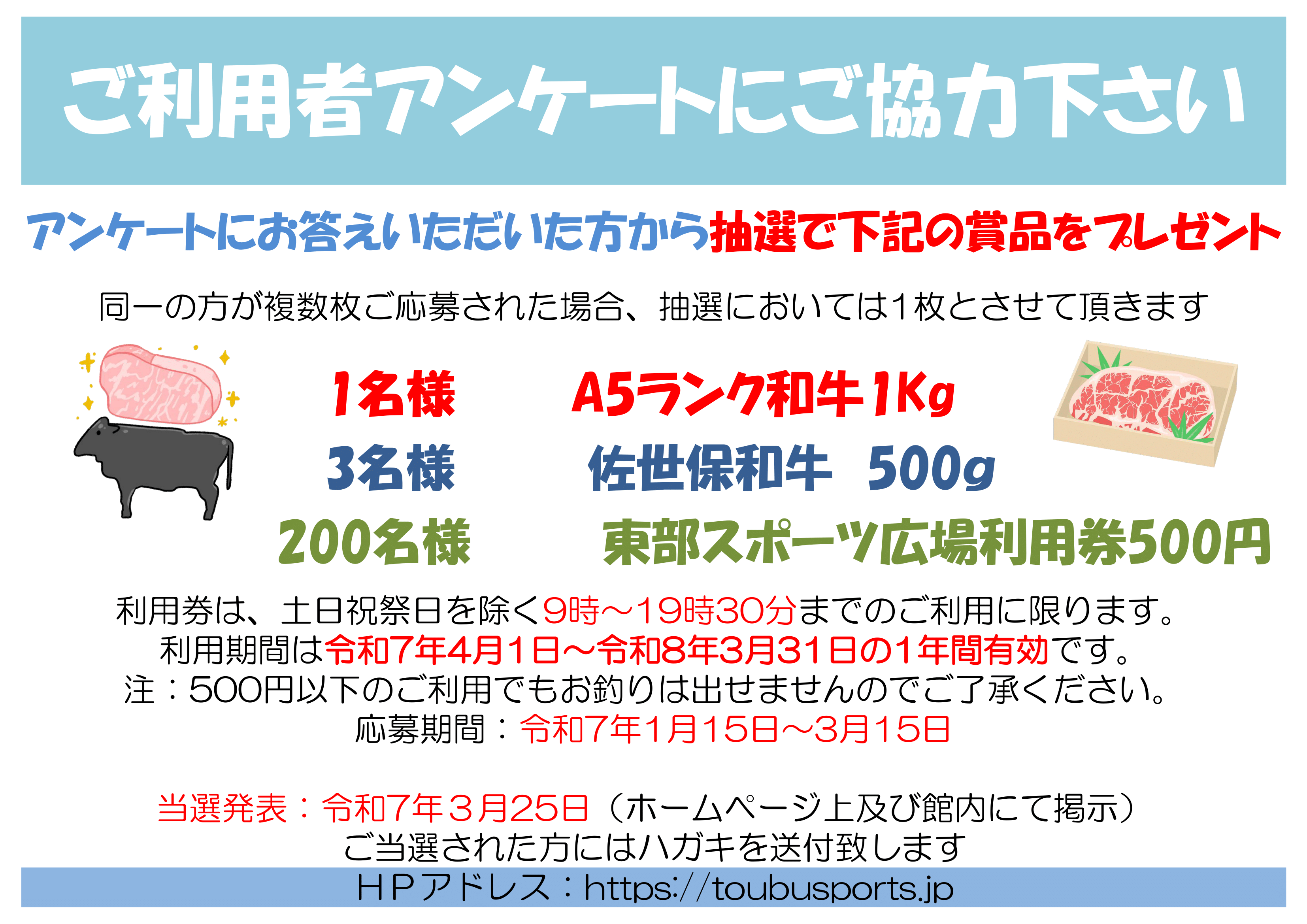 利用者アンケート当選者のお知らせ