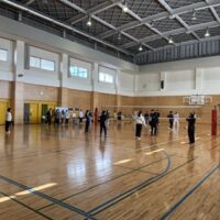 今日は体育館を貸切り、昨日からの「長崎県民スポーツ大会バドミントン競技」の2日目となり、 昨日の予選トーナメントで勝ち上がった地区のチームの決勝トーナメントです。 9時からの試合開始に向け各チームとも練習に励んでいます。 …