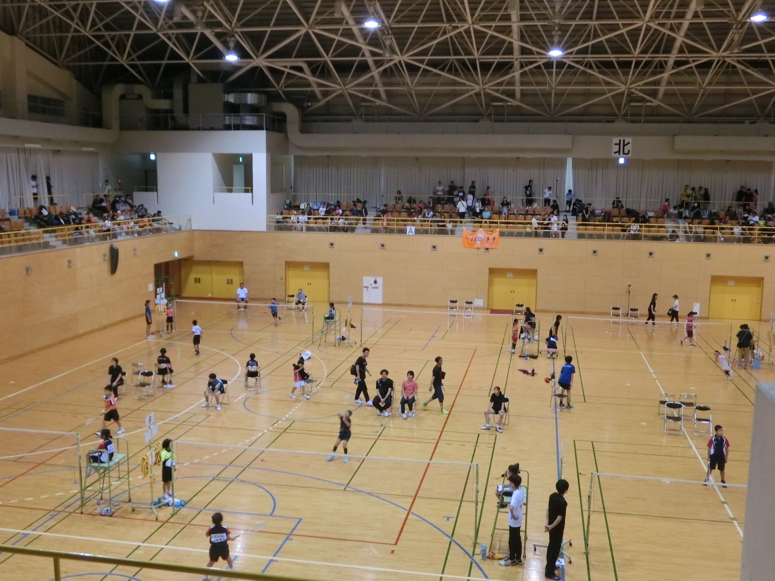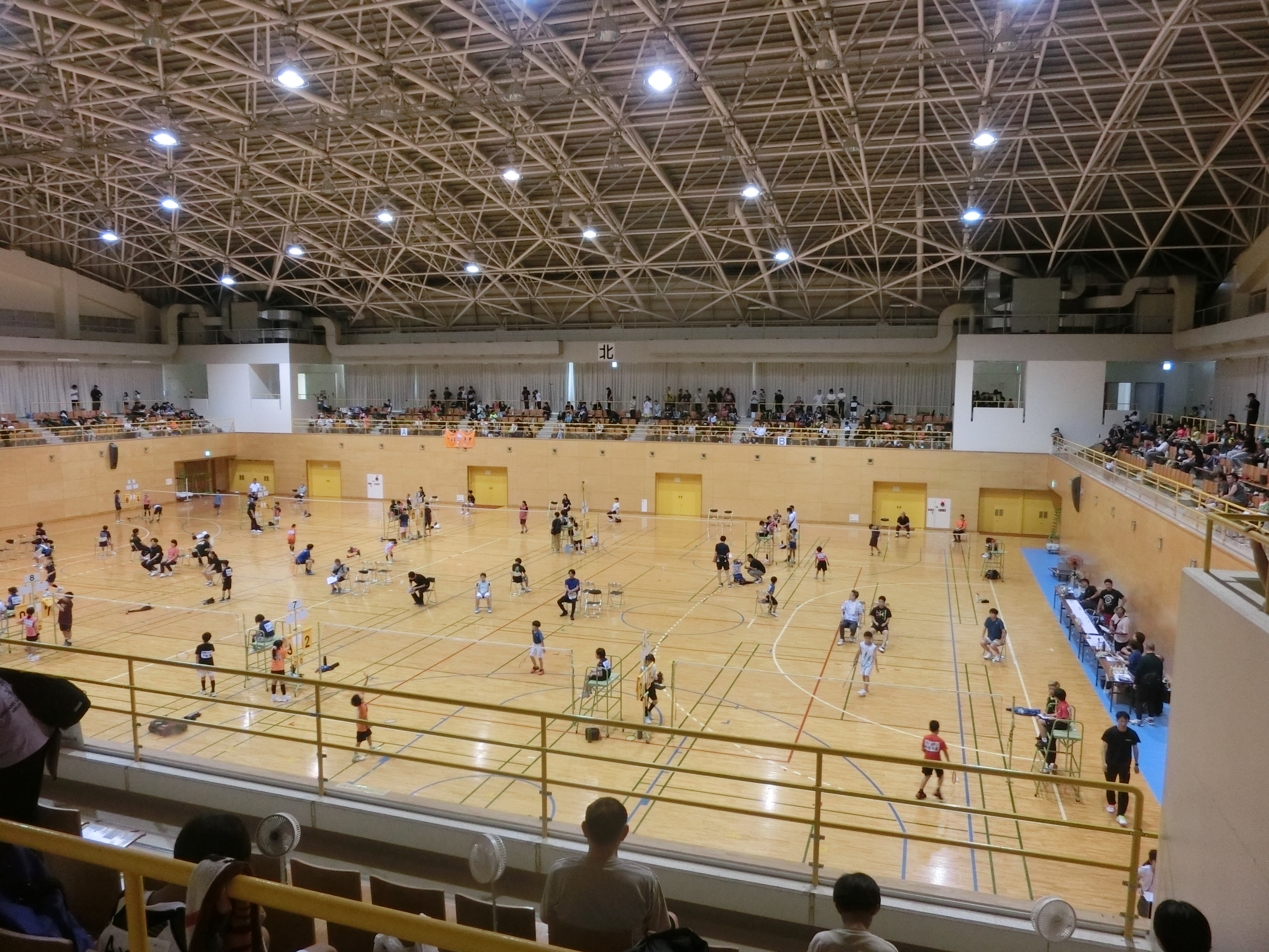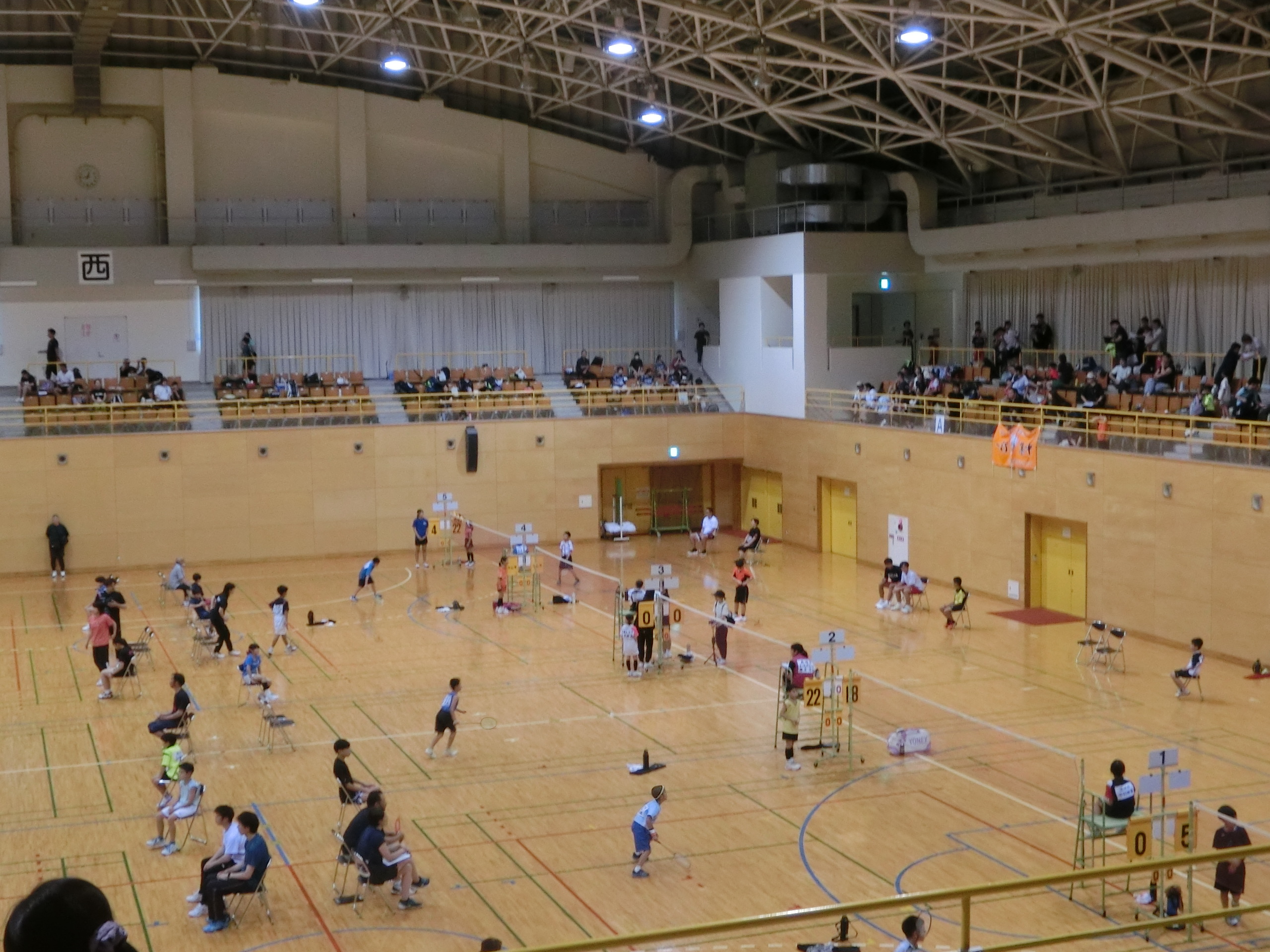 体育館では佐世保地区内外から小学生の皆さんが集まってバドミントン大会が行われています。
