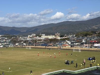 本日はサッカー場で小学生が12チーム集まり、「キズナカップサッカー大会」が行われています。