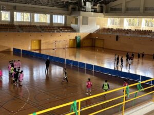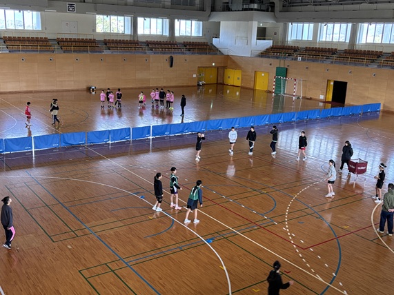 また体育館では県ハンドボール主催の「U-12ハンドボール強化練習会」が行われて県下の小学生が集まっています。