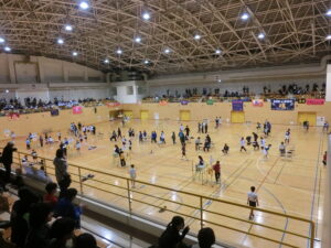体育館では佐世保地区中学生によるバドミントンのグローアップ大会が行われています。