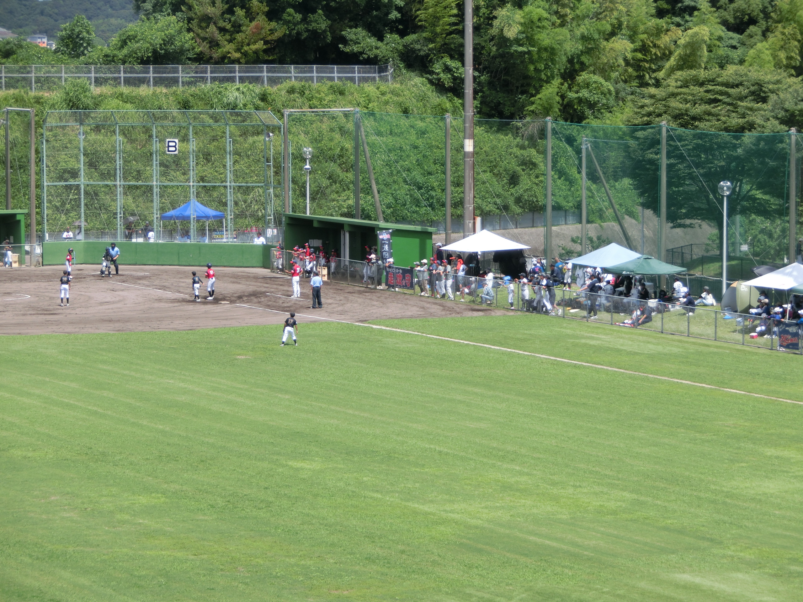 夏休み前の日曜日、グラウンドでは佐世保市少年ソフトボール大会と地元サッカークラブ主催の