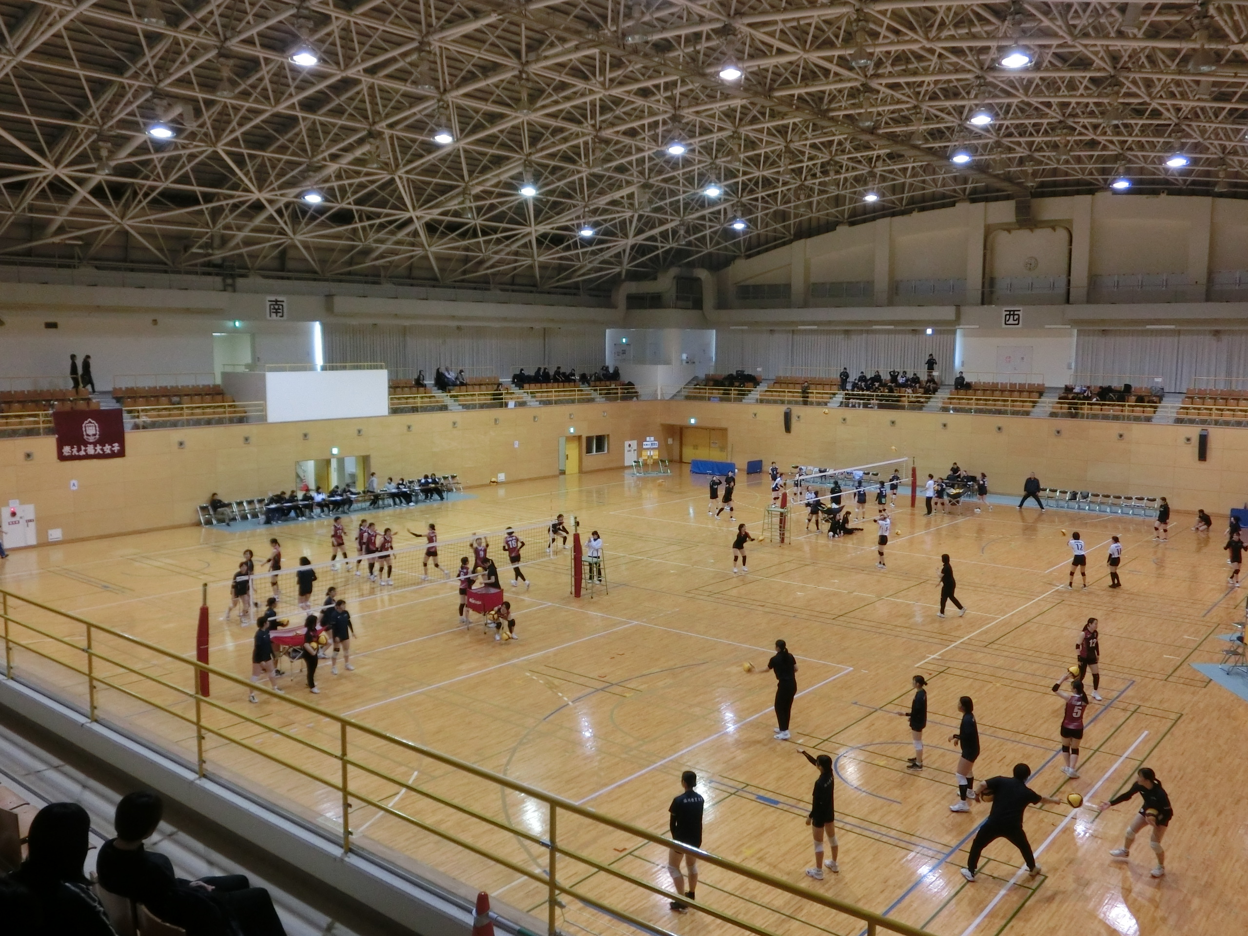 体育館では、九州大学春季バレーボール女子1部リーグ戦が行われています。