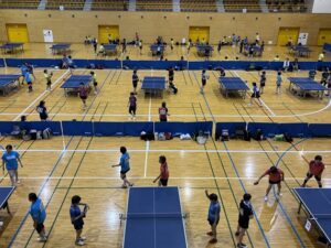 本日はメインアリーナで「佐世保市レディース卓球大会2人団体戦」が行われています。