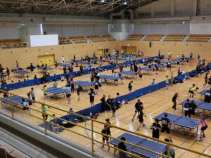 メインアリーナでは佐世保市長杯春季団体戦の卓球大会が行われています。