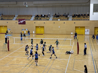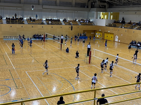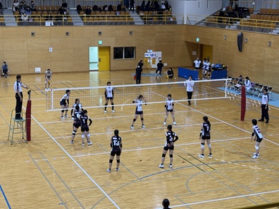 体育館では昨日に引続き「九州大学春季バレーボール女子1部リーグ」がおこなわれています。