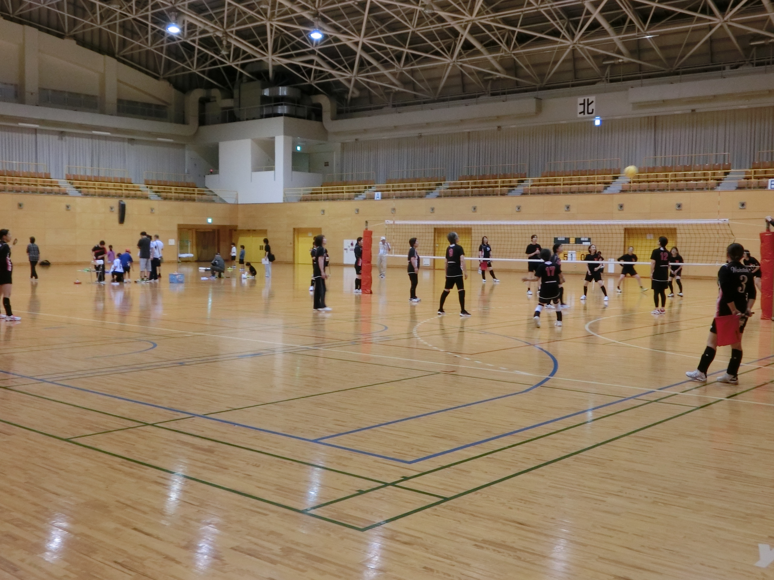 体育館はまだまだ暑いため空調(冷房)を入れて試合が進んでいます。