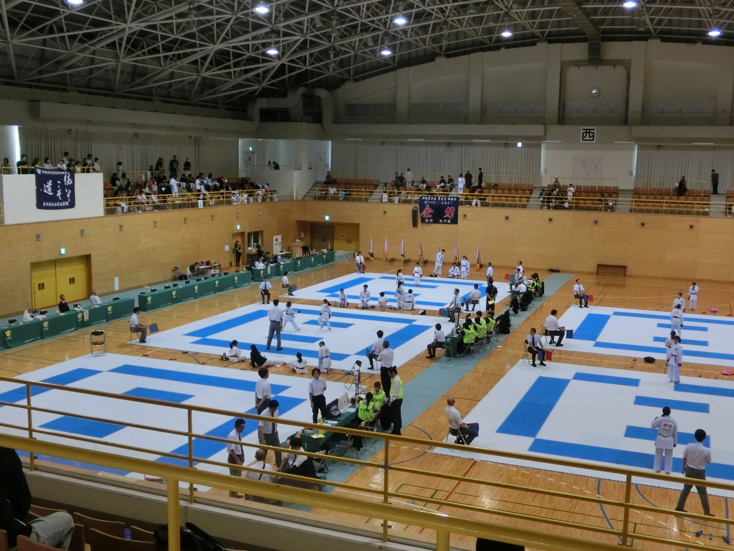 今日は体育館では、松林会空手道大会が開催されています。