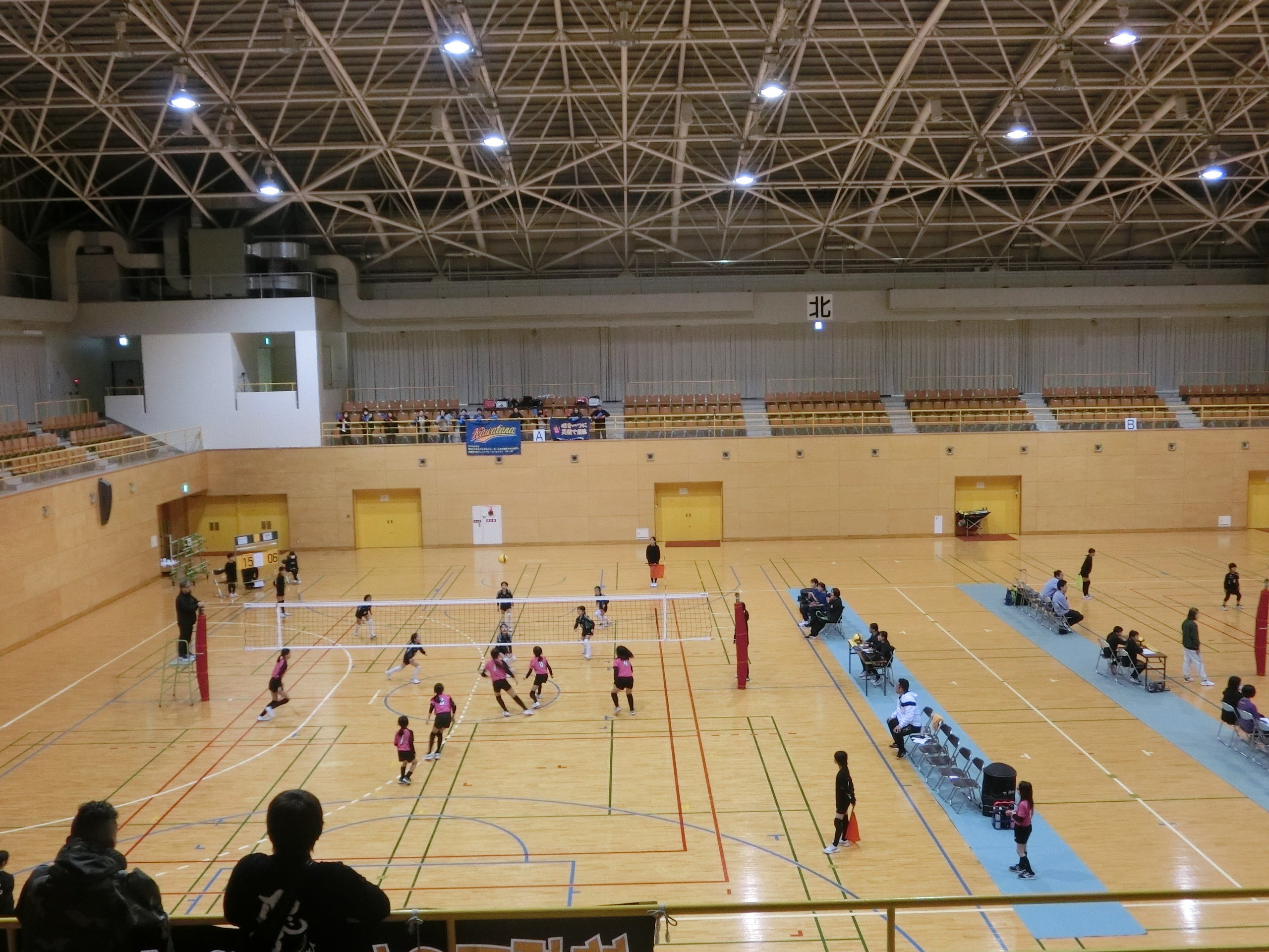市内4会場では2日間に渡って小学生バレーボール大会が行われますが、当体育館では16チームの選手が熱戦を繰り広げます。