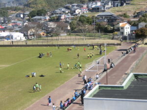グラウンドでは地元サッカークラブのサッカー大会と、ソフトボールと軟式野球の練習会が行われています。