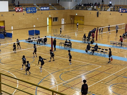 体育館では昨日に引続き、「県北地区小学生バレーボール選手権大会」がおこなわれています。