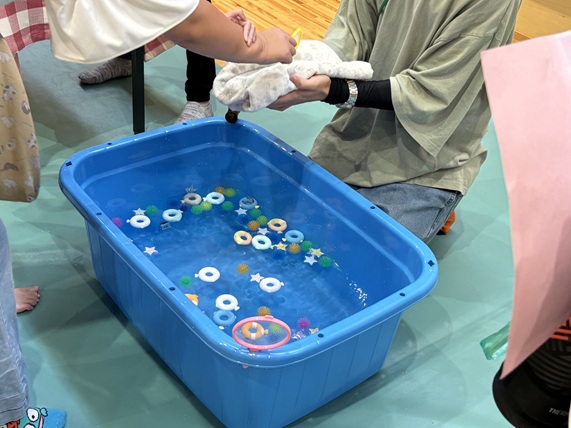 実際の夏祭りは外であるので暑いですが、ここ東部では空調が効いており子供たちは走り回っていますね。