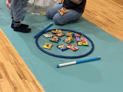 縁日にあるような射的、輪投げ、くじ引き、ボウリングなど子供が楽しめる催事で、大喜びです。