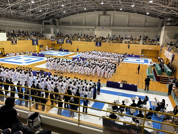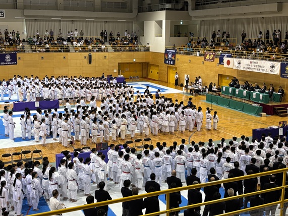 本日は九州各県から小中学生をメインに約600名ほど集まり、空手の「形」や「組手」を競います。