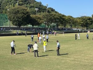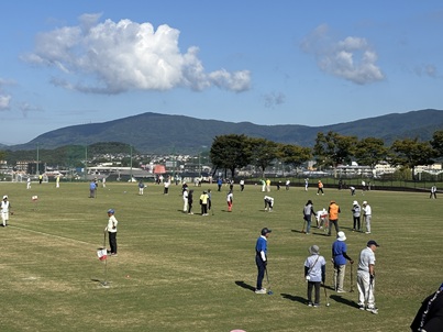 本日はラグビー・サッカー場を貸切り「長崎県グラウンドゴルフ県北地区親善大会」がおこなわれています。