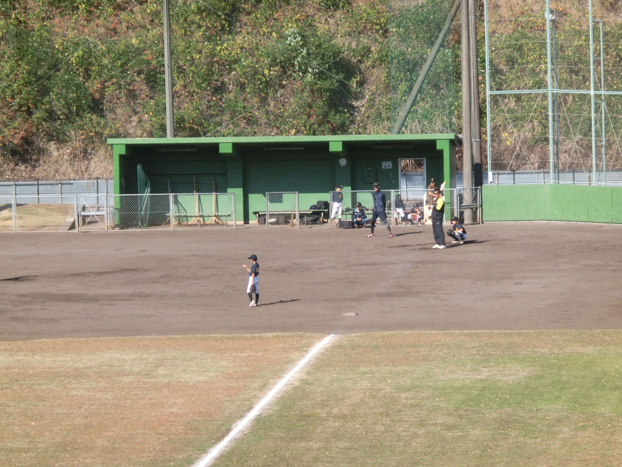 グラウンドでは朝早くから学童軟式野球の練習会が行われています。