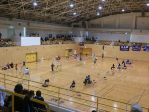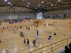 体育館では、昨日に続いて「県バドミントン競技春季選手権(女子)」が行われています。