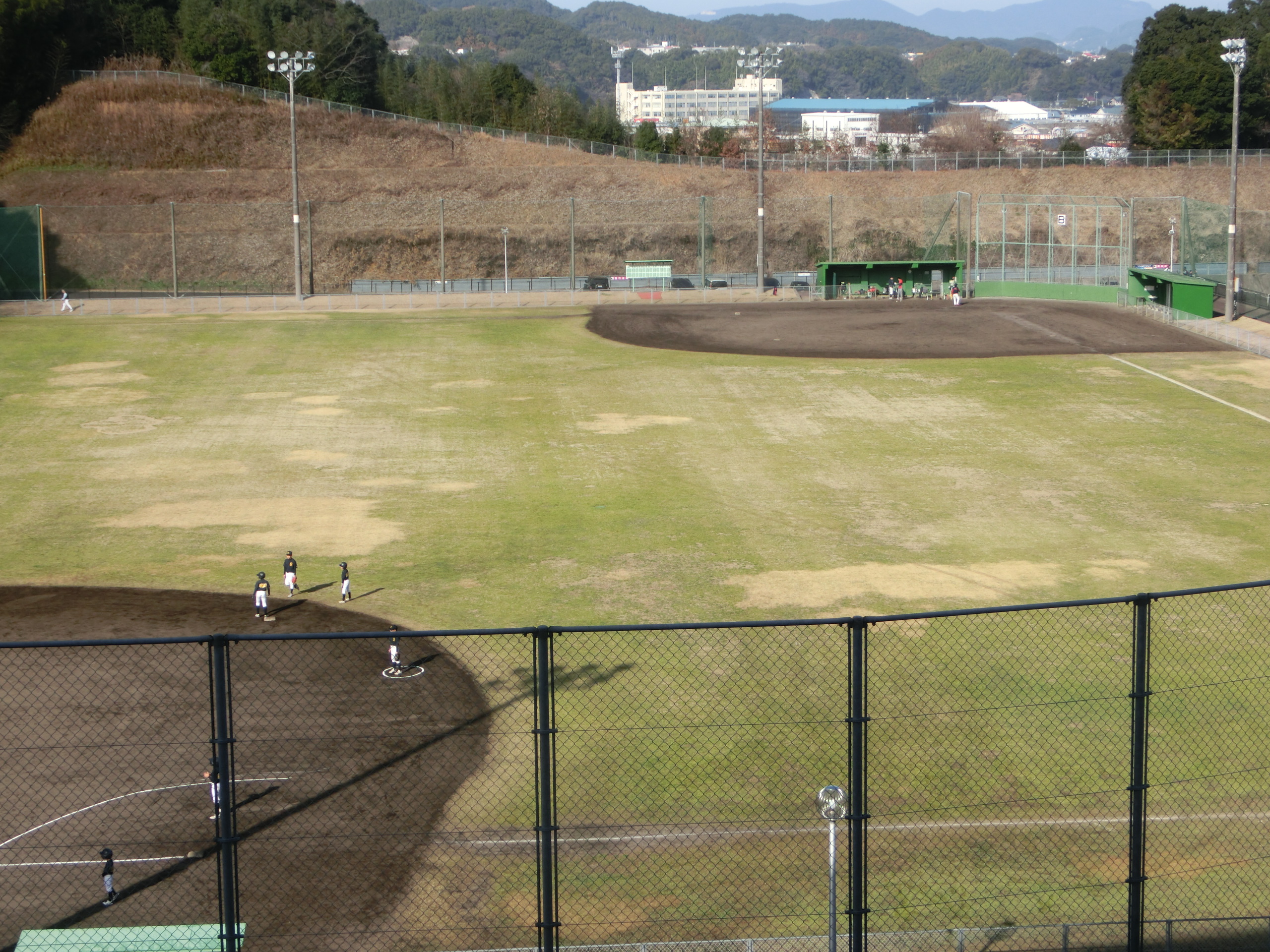 ソフトボール場では軟式野球とソフトボールの練習会が行われています。