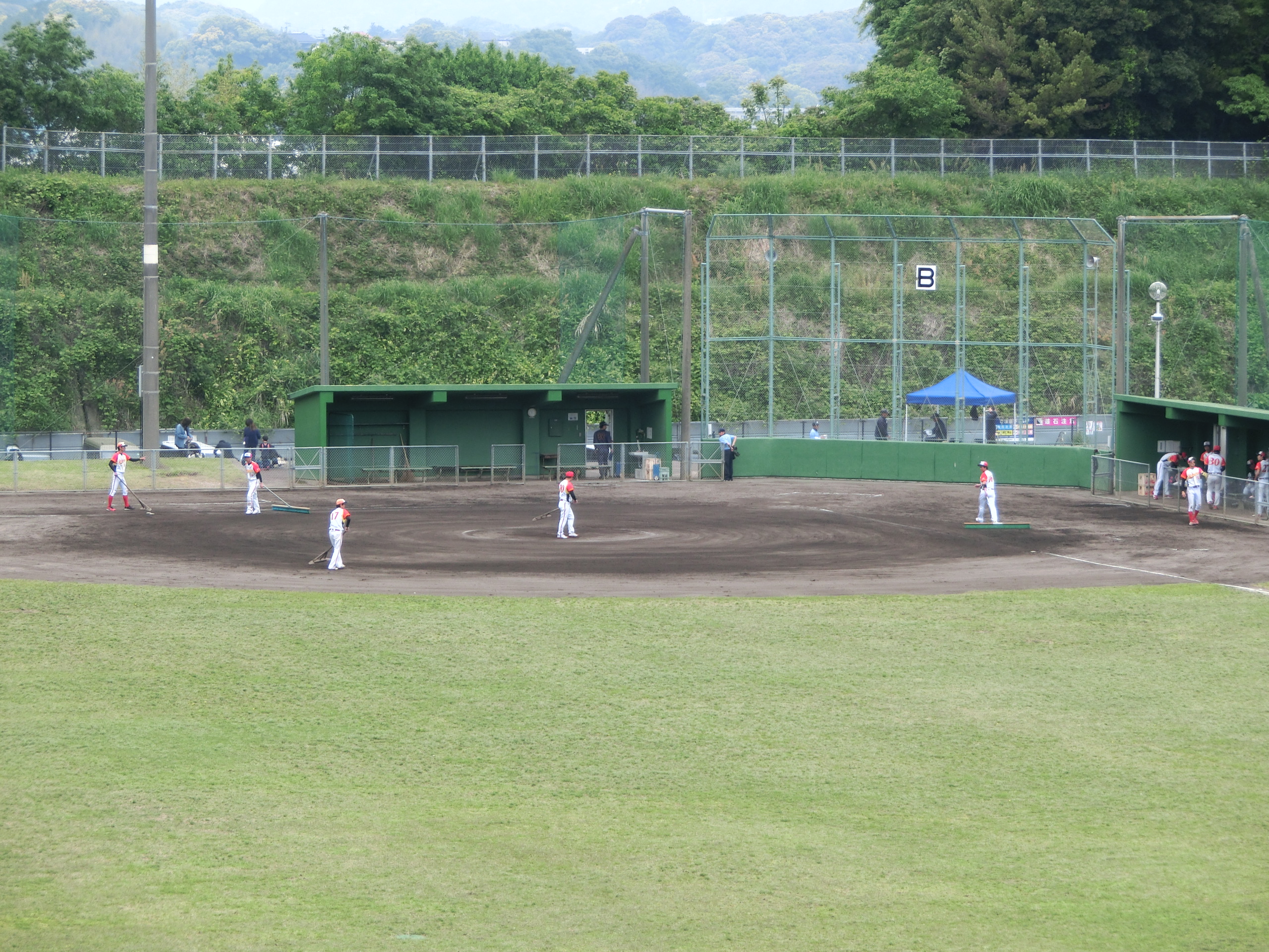 今にも振り出しそうなお天気になってしまいましたが、グラウンドではソフトボールの大会が昨日に続いて行われています。
