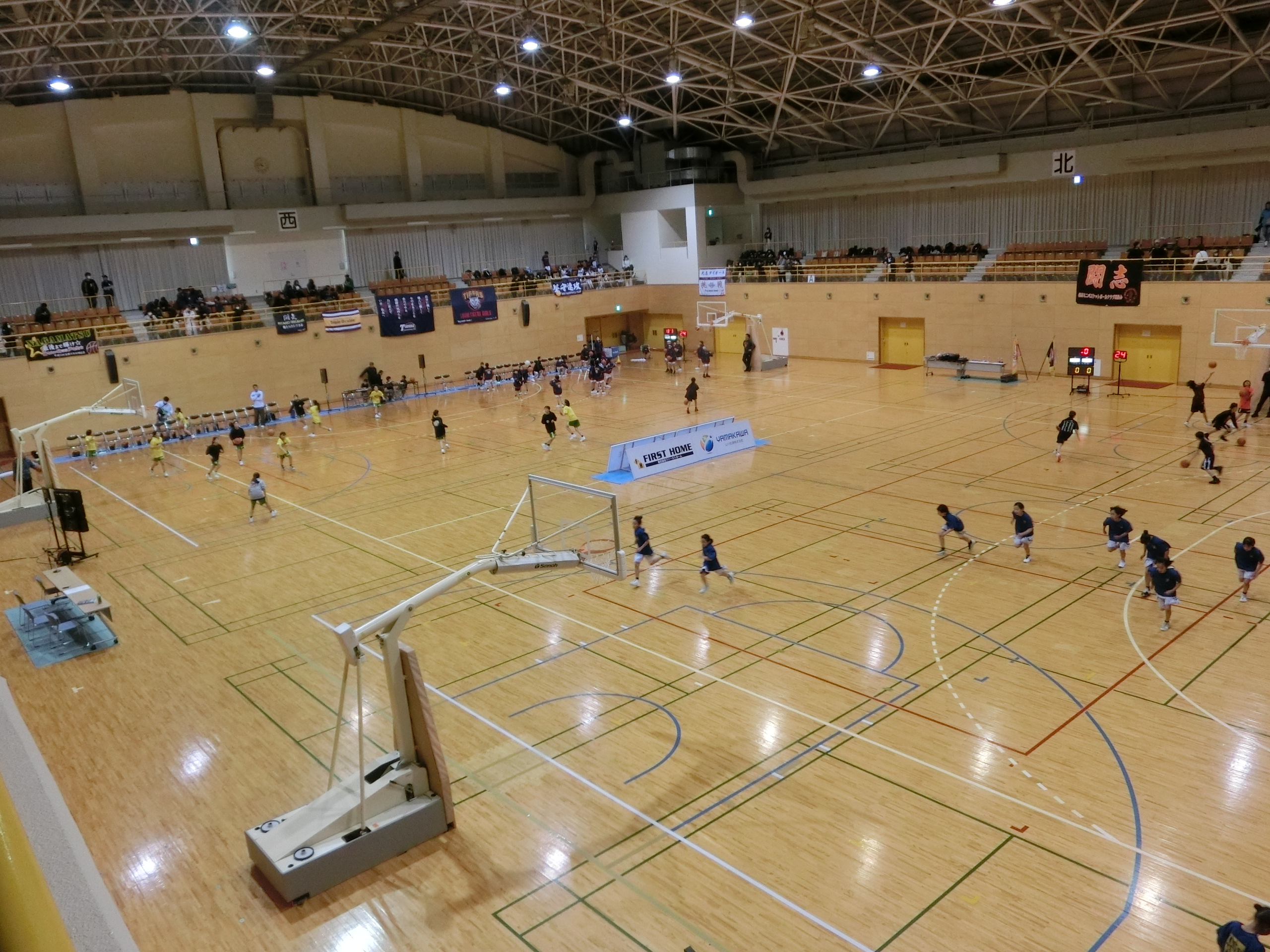体育館では、トップくん杯ミニバスケットボール大会2日目が行われています。男子女子1位トーナメントが各8チームずつの闘いで決まります。